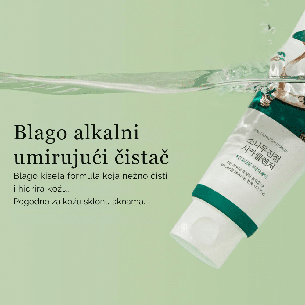 ROUND LAB Pine Calming Cica Cleanser nežni gel-to-foam čistač formulisan je za umirujuću svakodnevnu negu, kombinujući ekstrakt bora i cica sastojke koji smanjuju iritaciju, balansiraju sebum i pročišćavaju pore dok zadržavaju vlagu. Osvežava kožu bez osećaja zatezanja, zahvaljujući hijaluronskoj kiselini različitih veličina čestica koja intenzivno hidrira nakon samo jednog čišćenja.