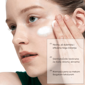 Uzmite malu količinu proizvoda, nanesite na vlažne dlanove i blago zapenite. Masirajte nežno preko lica kružnim pokretima, a zatim isperite mlakom vodom. Upotrebljavajte ujutro i uveče kao prvu fazu nege. Ako se pojavi iritacija, prekinite upotrebu.