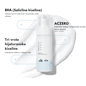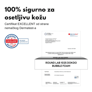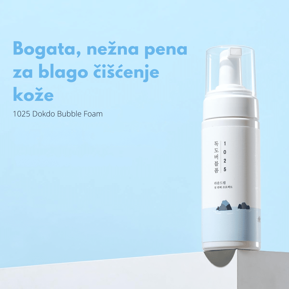 Round Lab 1025 Dokdo Bubble Foam je blagi, ali efektan pH-neutralizovan gel-penasti čistač lica bogat mineralnom vodom s čeonog dna korejskog mora. Napravljen je na osnovi amino-kiselinskih surfaktanata koji u dodiru s vodom stvaraju gustu, bogatu penu koja nežno uklanja višak sebuma, nečistoće i blagi makeup bez isušivanja kože. Formula je obogaćena hijaluronskom kiselinom, ekstraktima zelenog čaja, centella asiatice, kamilice i bora, pružajući intenzivnu hidrataciju, umirenje i osveženje, dok morska voda jača barijeru i vraća elastičnost i sjaj .