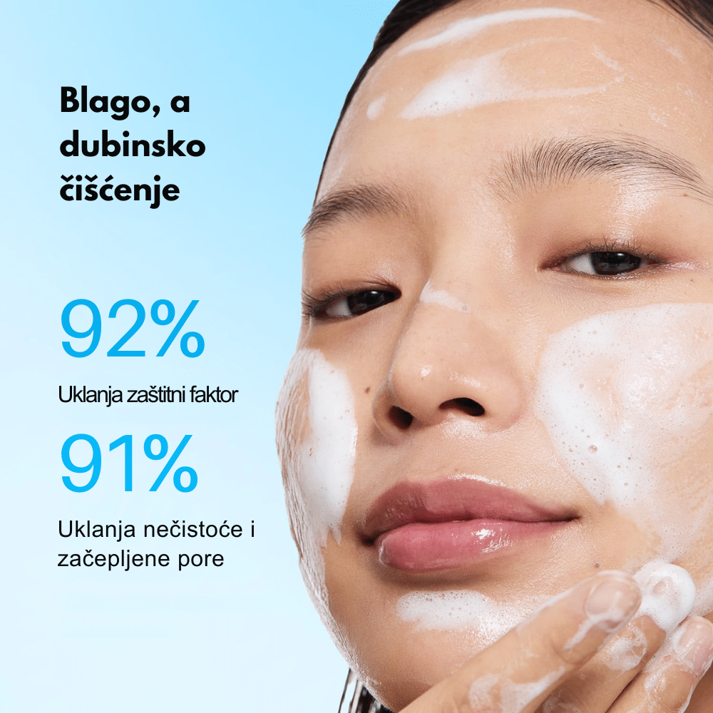 Pena za čišćenje koja dubinski uklanja nečistoće i hidrira kožu bez osećaja zatezanja i suvoće.