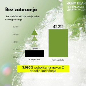 Pena-čistač sa ekstraktom zelenog pasulja za nežno čišćenje i balans pH-vrednosti kože.