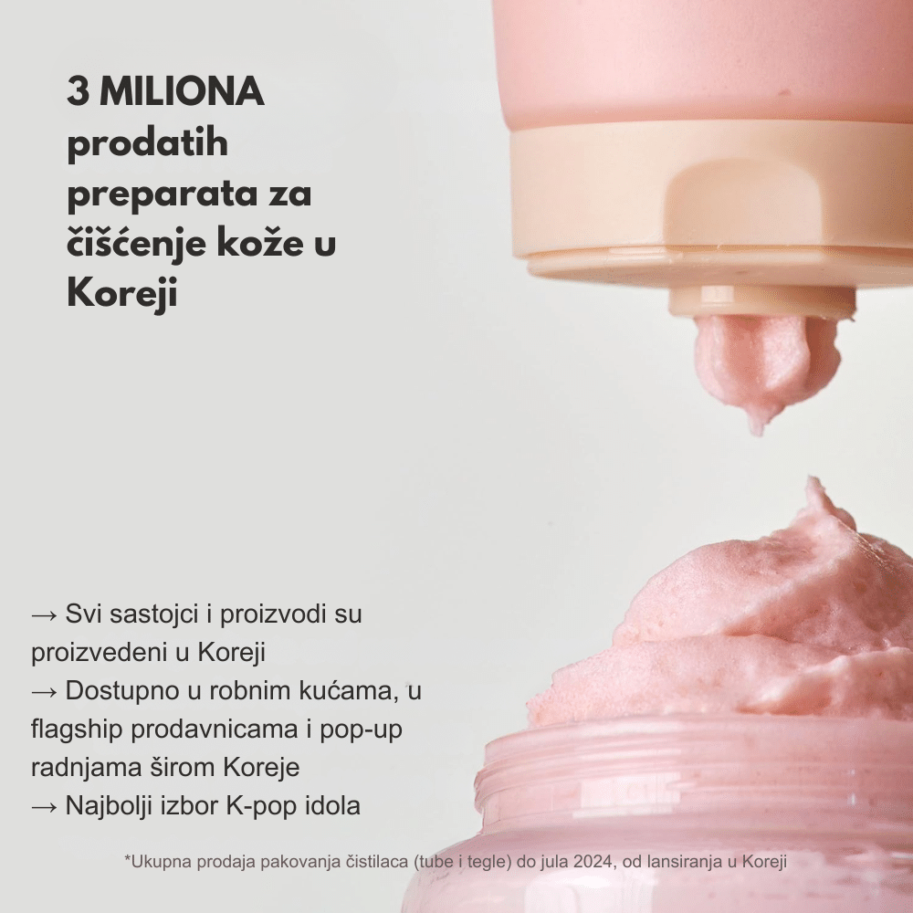 WHIPPED Vegan Pack Cleanser Jumbo “Ddalva” je veganski čistač-maska kombinacija sa ultra-mekanom formulom koja nežno uklanja nečistoće, balansira i osvežava ten, a posebno je formulisan za blistav izgled kože zahvaljujući kombinaciji jagode, niacinamida i glutationa.