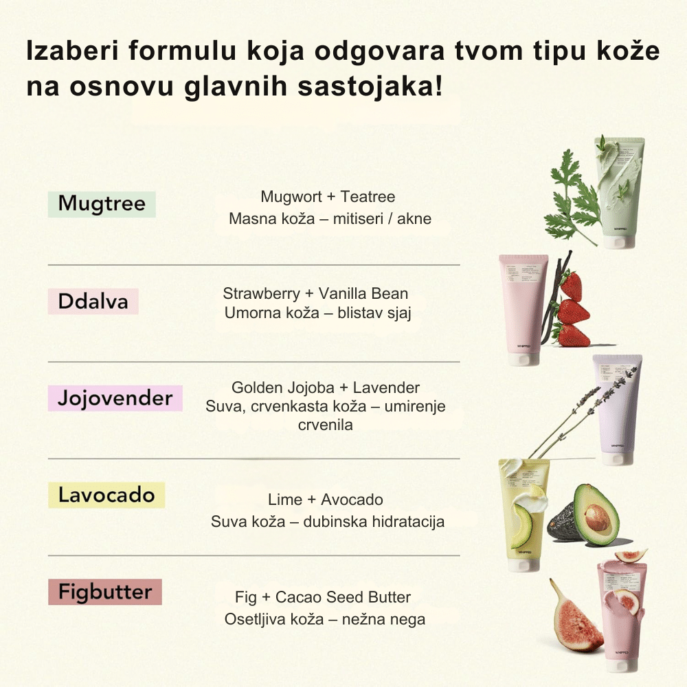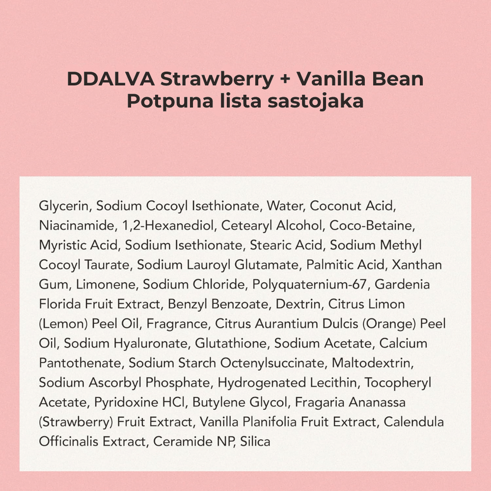 Veganski čistač-maska sa šlag teksturom i jagodom za nežno čišćenje, hidrataciju i ujednačen ton kože.