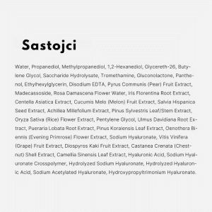 Water, Butylene Glycol, Methylpropanediol, Gluconolactone (PHA), Hamamelis Virginiana (Witch Hazel) Extract, Sodium Hyaluronate, Panthenol, Allantoin, Betaine, Dipotassium Glycyrrhizate, Hydroxyethylcellulose, Arginine, Carbomer, Disodium EDTA, Ethylhexylglycerin, Phenoxyethanol.