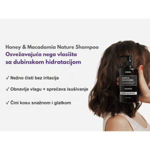 Prirodni šampon sa medom i makadamijom koji čisti, hrani i vraća kosi mekoću, sjaj i elastičnost