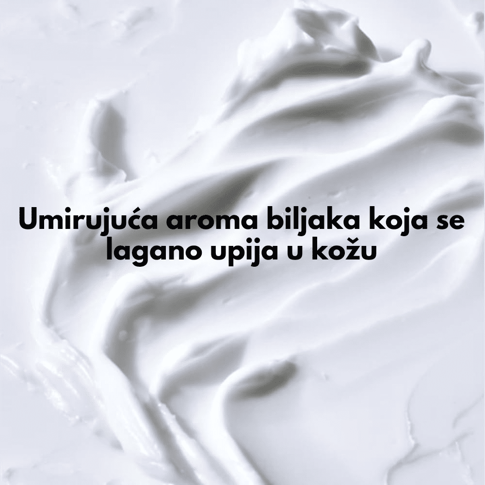 Water, Glycerin, Dipropylene Glycol, Cetearyl Alcohol, Butyrospermum Parkii (Shea) Butter, Stearyl Alcohol, Isopropyl Palmitate, Cetearyl Olivate, Citrus Aurantium Dulcis (Orange) Peel Oil, Citrus Aurantium Bergamia (Bergamot) Fruit Oil, Glyceryl Caprylate, Glyceryl Stearate, Lavandula Angustifolia (Lavender) Oil, Acrylates/C10-30 Alkyl Acrylate Crosspolymer, Sorbitan Sesquioleate, Hydroxyethyl Acrylate/Sodium Acryloyldimethyl Taurate Copolymer, Tromethamine, Pelargonium Graveolens (Geranium) Oil, Cetearyl Glucoside, Helianthus Annuus (Sunflower) Seed Oil, Ethylhexylglycerin, Hydrogenated Lecithin, Caprylic/Capric Triglyceride, Rosmarinus Officinalis (Rosemary) Leaf Oil, Tocopherol, 1,2-Hexanediol, Disodium EDTA, Sorbitan Isostearate, Glucose, Simmondsia Chinensis (Jojoba) Seed Oil, Panthenol, Persea Gratissima (Avocado) Oil, Cereus Grandiflorus (Cactus) Extract, Butylene Glycol, Sodium Hyaluronate, Caprylyl Glycol, Tremella Fuciformis (Mushroom) Extract, Panax Ginseng Root Extract, Camellia Sinensis Leaf Extract, plus parfemske komponente (Citral, Limonene, Linalool, Geraniol, Coumarin, Citronellol).