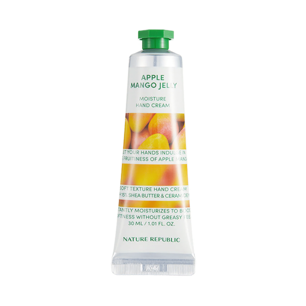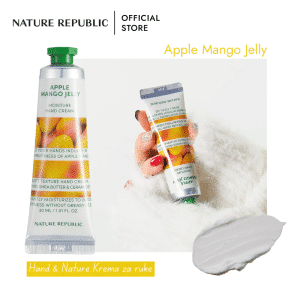 Nature Republic Apple Mango Jelly Hand Cream je osvežavajući tretman za ruke koji donosi tropski miris i intenzivnu hidrataciju u laganoj, “jelly” (želatinastoj) teksturi. Ova krema je specifična po svojoj formulaciji koja se trenutno topi u dodiru sa kožom, pružajući trenutni osećaj hlađenja i vlage bez ikakvog masnog ili lepljivog ostatka. Glavni sastojak, ekstrakt jabuka-manga, bogat je vitaminima A i C, koji pomažu u revitalizaciji umorne kože ruku i održavanju njene mekoće. Za razliku od teških, puterastih krema, ova varijanta je idealna za korišćenje tokom toplijih dana ili za osobe koje ne vole osećaj težine na dlanovima, a ipak žele da spreče isušivanje. Kompaktno pakovanje čini je savršenom za nošenje u torbi, omogućavajući vam da u svakom trenutku osvežite ruke i uživate u neodoljivom, slatkom mirisu egzotičnog voća koji popravlja raspoloženje.