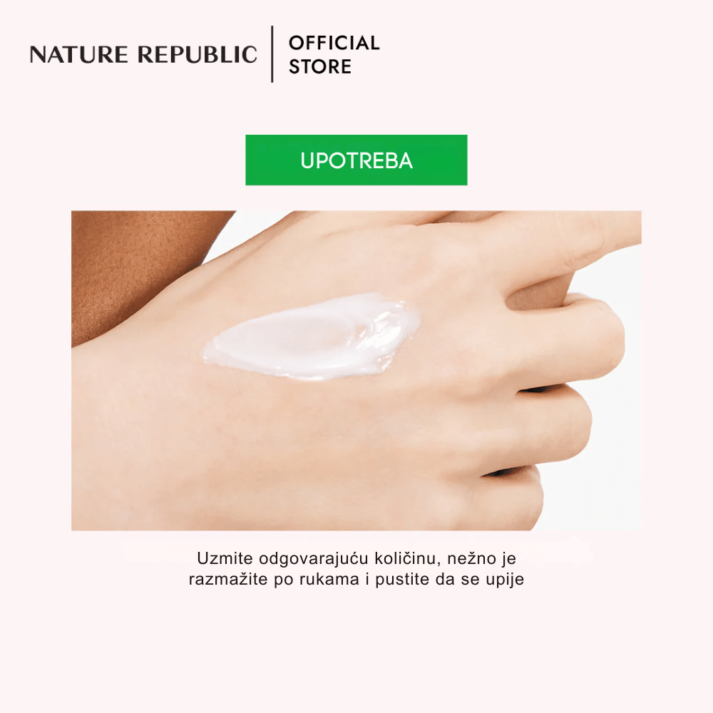 Nanesite odgovarajuću količinu kreme na čiste ruke kad god osetite suvoću ili zatezanje. Nežno masirajte dlanove, nadlanice i područje oko zanoktica dok se proizvod potpuno ne upije. Zahvaljujući laganoj teksturi, možete je nanositi više puta u toku dana bez brige o ostavljanju tragova na tastaturi ili telefonu. Proizvod je namenjen isključivo za spoljnu upotrebu na rukama; izbegavajte kontakt sa očima. U slučaju pojave crvenila ili iritacije, prekinite sa upotrebom. Čuvajte na hladnom mestu dalje od direktne sunčeve svetlosti.