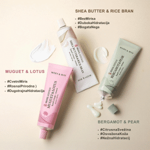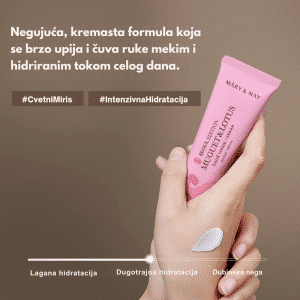 Mary&May Muguet & Lotus Hand Cream 50 ml je luksuzna, dermatološki testirana krema za ruke koja kombinuje hidrataciju sa suptilnim i osvežavajućim mirisom mugueta (španske ljiljane) i lotosa. Ova divna formula brzo se upija zahvaljujući kombinaciji sunflower seed oil, shea buttera i ceramide NP, koji hrane i obnavljaju osetljivu, suhu i normalnu kožu bez masnog tragovanja. S patenriranom EWG green klasom čistih sastojaka i veganskom & cruelty‑free etikom, krema je savršena za svakodnevno osveženje tokom svih godišnjih doba. Pakovanje u reciklirajućoj aluminijumskoj tubi od 50 ml idealno je za torbu, dok bezalkoholna i bezalergenska formula pruža mekoću, umirenost i suptilnu mirisnu notu – pravo wellness iskustvo za ruke.