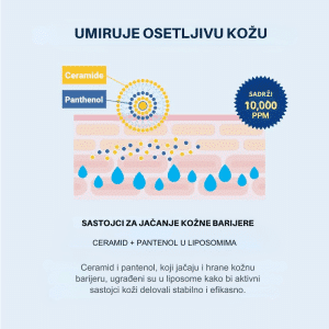 Intenzivna krema sa ceramidima i pantenolom hrani i obnavlja suvu i osetljivu kožu, smanjuje svrbež i jača zaštitnu barijeru bez mirisa.