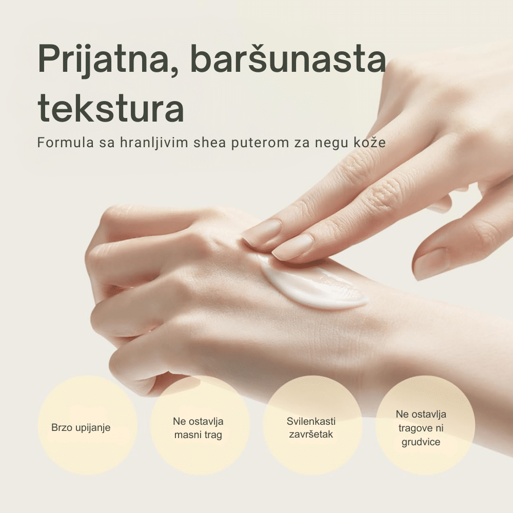 Hranljivi losion sa shea buterom i hijaluronskom kiselinom koji dubinski hidrira i obnavlja kožu tela.