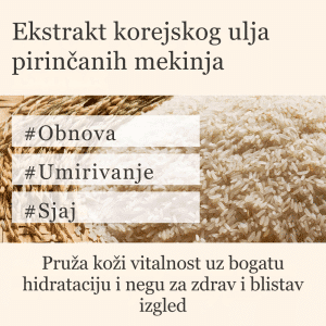 Rice (pirinač) je tradicionalni sastojak u azijskoj nezi kože, poznat po svojim hidratantnim, osvetljavajućim i umirujućim svojstvima. Ekstrakt pirinča bogat je aminokiselinama, vitaminima i antioksidansima, koji pomažu u ujednačavanju tena, smanjenju tamnih mrlja i poboljšanju elastičnosti kože. Pirinač takođe jača zaštitnu barijeru kože, pomaže u zadržavanju vlage i doprinosi glatkom, blistavom tenu. Njegova umirujuća svojstva čine ga pogodnim i za osetljivu kožu, dok blago eksfolijativno dejstvo pomaže u uklanjanju mrtvih ćelija i vraćanju prirodnog sjaja kože. Često se koristi u tonerima, esencijama, maskama i kremama za hidrataciju i osvetljavanje kože.