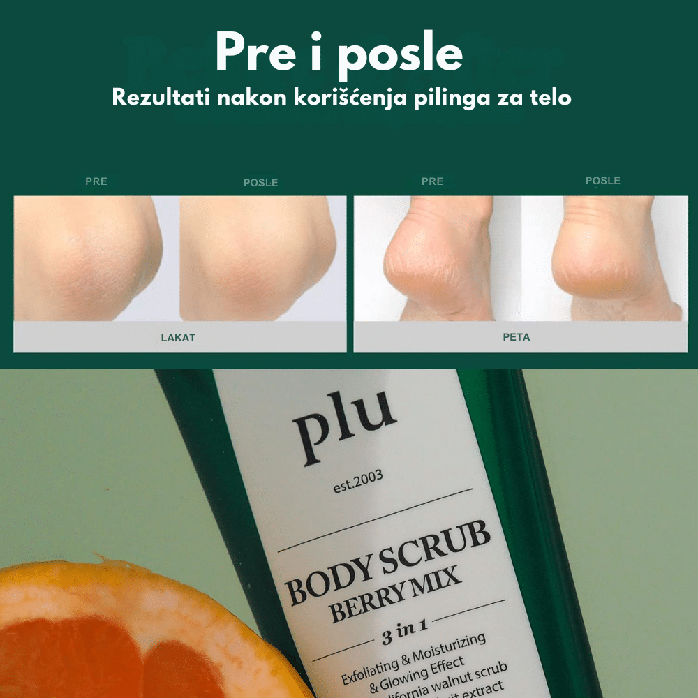 Plu je korejski brend posvećen naprednoj nezi tela, kombinujući prirodne ekstrakte i savremene formule za vidljivo glađu, mekšu i zdraviju kožu. Fokusira se na nežne, ali efikasne eksfolijante i hidratantne teksture koje obnavljaju kožu bez iritacija. Brend je prepoznatljiv po čistim formulacijama, prijatnim mirisnim profilima i balansu prirodnih ulja i hranljivih sastojaka. Plu donosi spa iskustvo u kućnu rutinu, pružajući luksuzan osećaj svakodnevne nege.