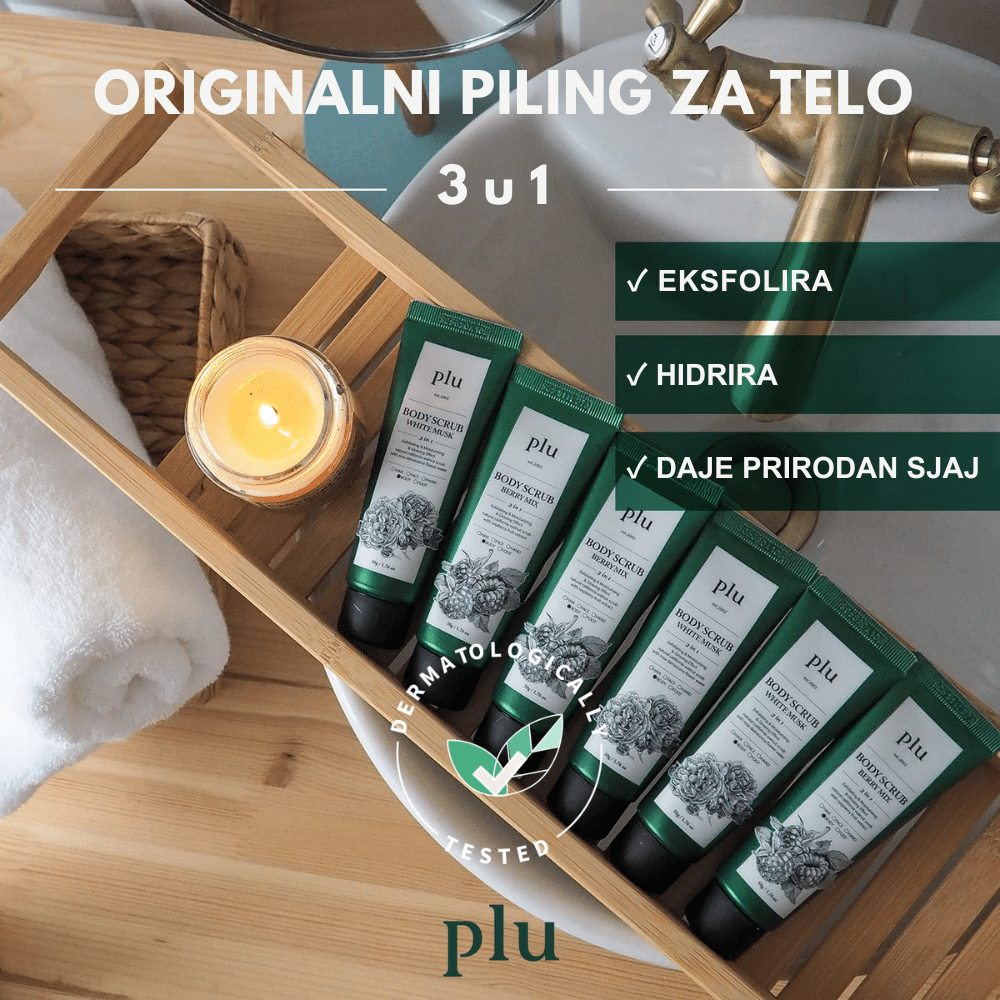 Plu je korejski brend posvećen naprednoj nezi tela, kombinujući prirodne ekstrakte i savremene formule za vidljivo glađu, mekšu i zdraviju kožu. Fokusira se na nežne, ali efikasne eksfolijante i hidratantne teksture koje obnavljaju kožu bez iritacija. Brend je prepoznatljiv po čistim formulacijama, prijatnim mirisnim profilima i balansu prirodnih ulja i hranljivih sastojaka. Plu donosi spa iskustvo u kućnu rutinu, pružajući luksuzan osećaj svakodnevne nege.