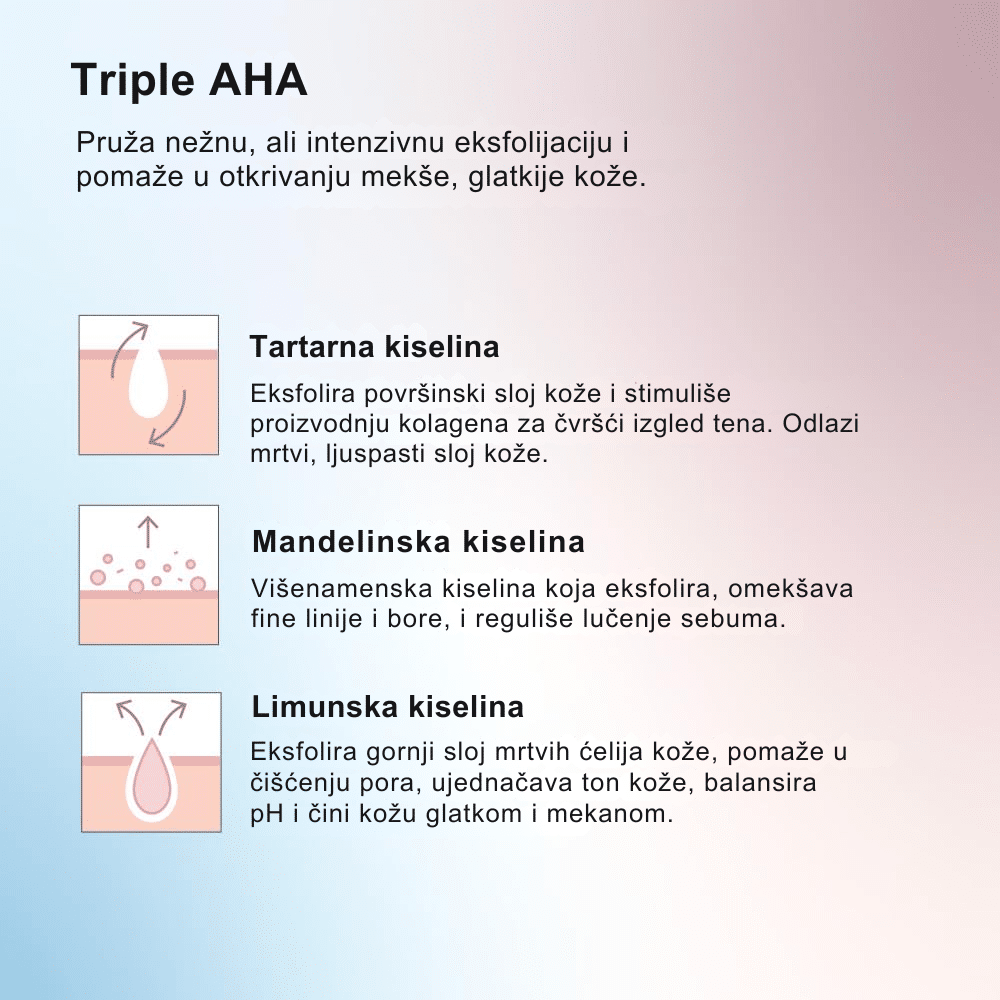Black Rice Triple AHA Gentle Cleansing Gel: Water (Aqua), Glycerin, Coco-Betaine, Sodium Chloride, Pentylene Glycol, Propanediol, 1,2-Hexanediol, Xanthan Gum, Betaine, Potassium Cocoyl Glycinate, Hydroxyethylcellulose, Ethylhexylglycerin, Citric Acid (500 ppm), Tartaric Acid (500 ppm), Mandelic Acid (500 ppm), Oryza Sativa (Rice) Extract (100 ppm), Phyllostachys Pubescens Shoot Bark Extract, Butylene Glycol, Zanthoxylum Piperitum Fruit Extract, Pulsatilla Koreana Extract, Usnea Barbata (Lichen) Extract, Aspergillus Ferment, Panax Ginseng Root Extract, Cyclodextrin, Beta-Glucan.