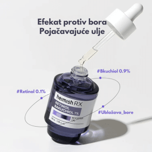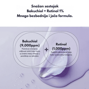 Retinol je oblik vitamina A koji se koristi u kozmetici zbog svojih anti-aging i regenerativnih svojstava. Pomaže u ubrzavanju obnove ćelija, smanjenju bora, poboljšanju elastičnosti kože i ujednačavanju tena. Takođe stimuliše proizvodnju kolagena, čineći kožu čvršćom i glatkijom. Osim što deluje protiv starenja, retinol pomaže u regulisanju lučenja sebuma i čišćenju pora, zbog čega je koristan i za masnu i problematičnu kožu sklonu aknama. Zbog svoje jačine, retinol može izazvati iritaiciju i suvoću, pa se preporučuje postepeno uvođenje u rutinu i korišćenje uz hidratantne proizvode i SPF zaštitu.