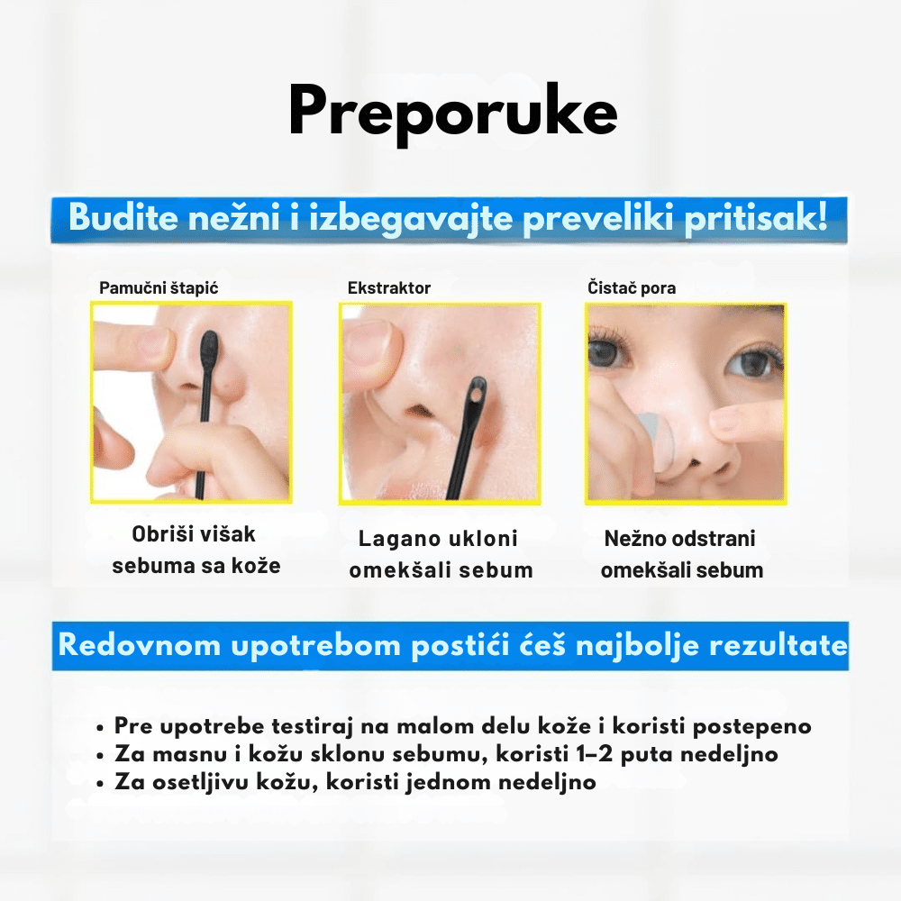Nakon čišćenja, natopiti pamučnu blaznicu proizvodom i naneti na T-zonu ili delove lica sa mitiserima i proširenim porama. Ostaviti 3–5 minuta, zatim ukloniti i nežno obrisati površinu kože. Koristiti 2–3 puta nedeljno. Pamučne štapiće koristiti za precizno čišćenje problematičnih zona poput nosa ili brade. Tokom dana obavezno naneti SPF zaštitu.