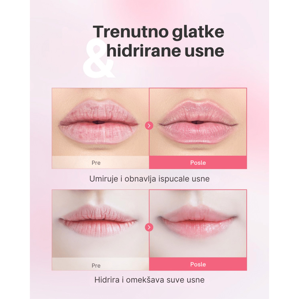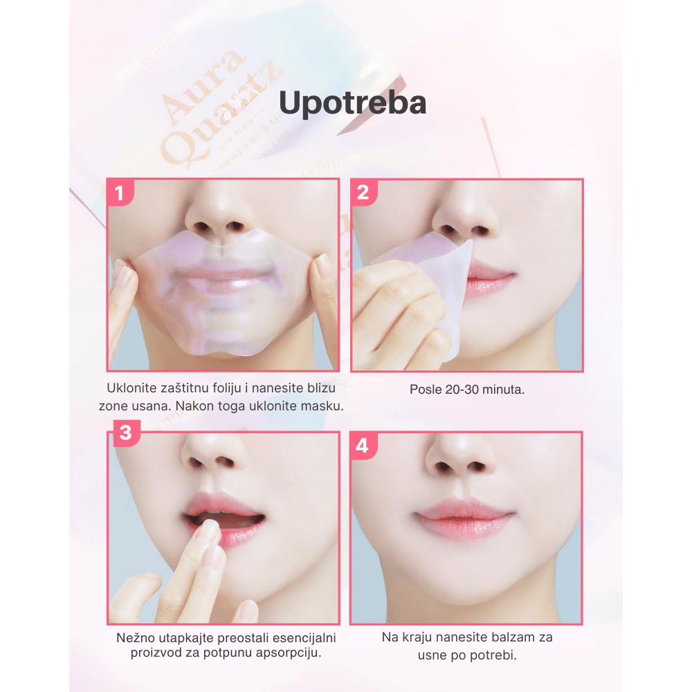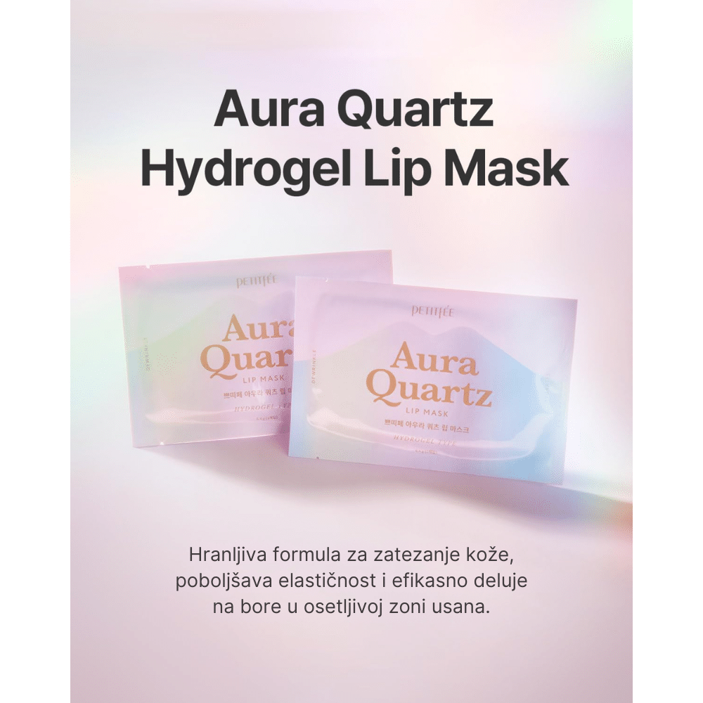 Petitfee Aura Quartz Lip Mask je luksuzna hydrogel maska za usne i okolinu usana, kreirana za intenzivnu anti‑age njegu. Formulacija sadrži snažne aktivne sastojke – retinol, bakuchiol, PDRN (sodium DNA), peptide kao što je acetyl hexapeptide‑8, zajedno sa vitaminom B3 (niacinamidom) i ferulinskom kiselinom, za poboljšanje elastičnosti i vidljivo smanjenje dubine bora već nakon 4 nedelje korišćenja, testirano – uz umeren pad od 7,65 % u dubini linija. Maska dodatno sadrži svilenkaste biserne, opalnu i dijamantsku prašinu koje koži daju intenzivno oslobađajuću negu i sjaj. Arganovo i sojino ulje, kao i kvasni ekstrakti, obezbeđuju duboku hidrataciju i barijeru protiv isušivanja . Tanak hidrogelski sloj se savršeno prilagođava usnama i smejalnim linijama, stvarajući osećaj nežne baršunaste zaštite i glatkoće. Ova maska je dermatološki testirana (zero primarne iritacije) , a bez parabena, silikona, sulfata i alkohola, pogodna je za svakodnevnu upotrebu i prijatna i za osetljivu kožu. Petitfee Aura Quartz Lip Mask postaje obavezni beauty ritual za sve one koji žele glatke, rejuvenirane i sjajne usne.