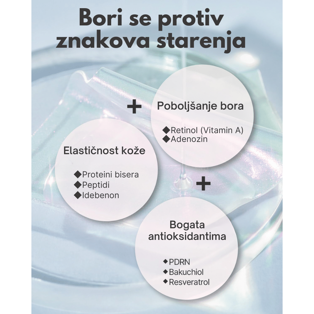 Retinol je oblik vitamina A koji se koristi u kozmetici zbog svojih anti-aging i regenerativnih svojstava. Pomaže u ubrzavanju obnove ćelija, smanjenju bora, poboljšanju elastičnosti kože i ujednačavanju tena. Takođe stimuliše proizvodnju kolagena, čineći kožu čvršćom i glatkijom. Osim što deluje protiv starenja, retinol pomaže u regulisanju lučenja sebuma i čišćenju pora, zbog čega je koristan i za masnu i problematičnu kožu sklonu aknama. Zbog svoje jačine, retinol može izazvati iritaiciju i suvoću, pa se preporučuje postepeno uvođenje u rutinu i korišćenje uz hidratantne proizvode i SPF zaštitu.