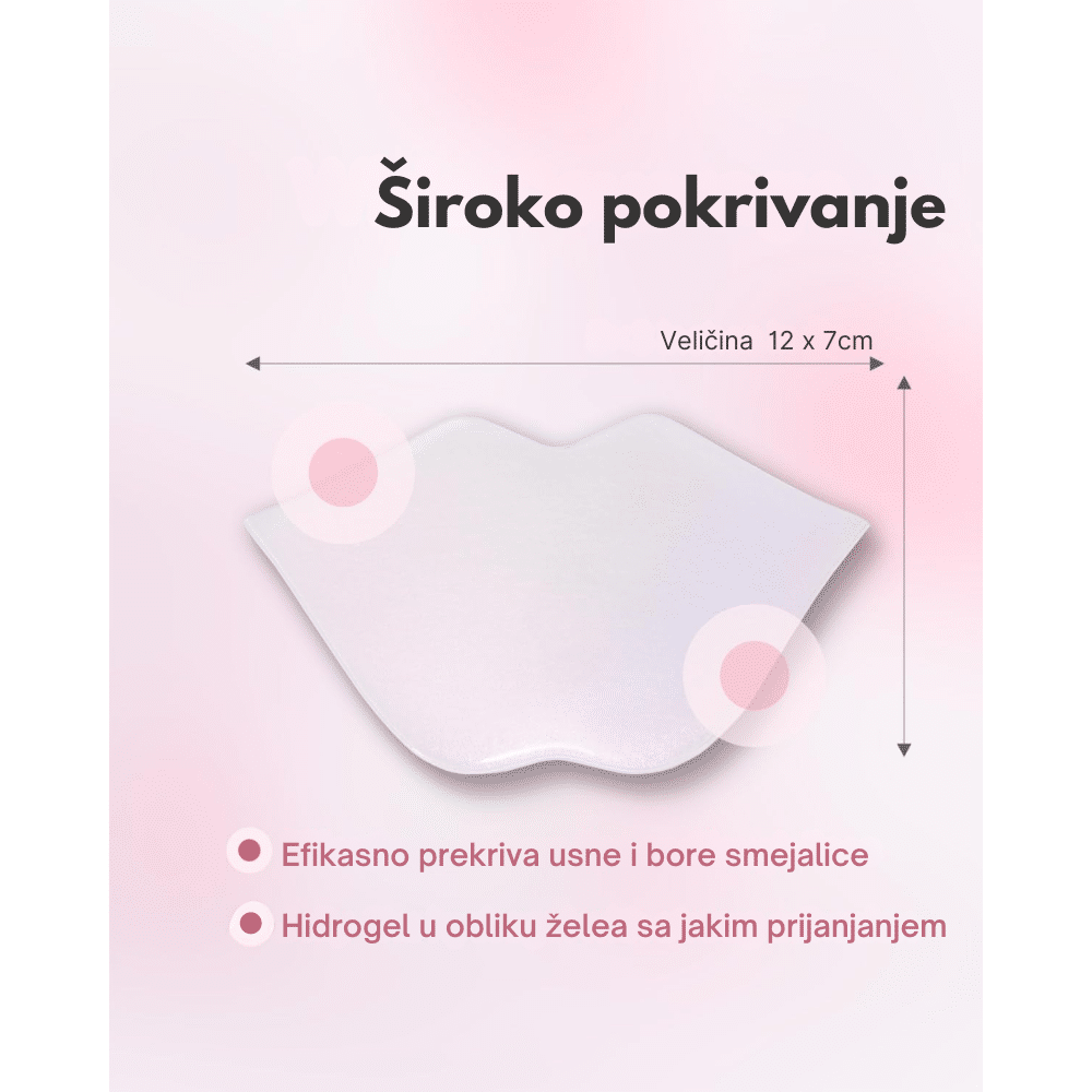 Napredna hydrogel maska za usne s retinolom, peptide i bisernom prašinom, smanjuje fine linije i hidrira za glatke, punije i blistave usne.