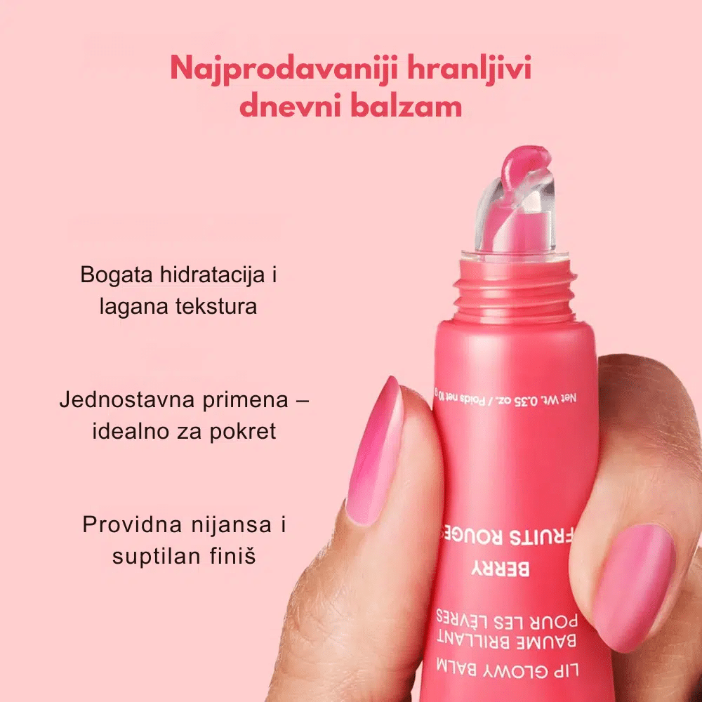 Voćni miris maline/jagode, daje blagi rosy glow i osvežava izgled usana.
