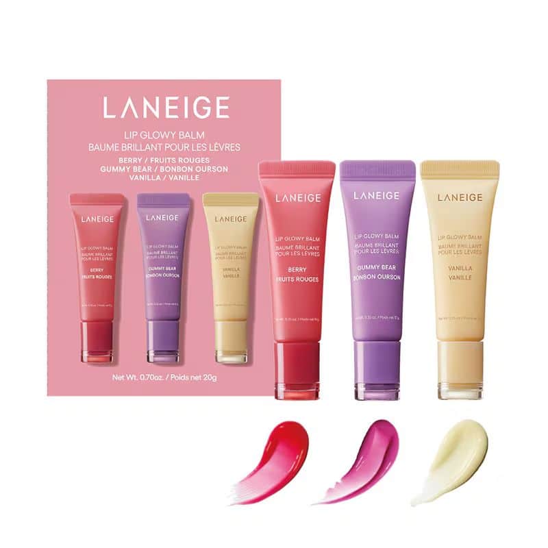 Laneige Lip Glowy Balm Trio Set 3pcs je luksuzni set od tri najpopularnija balzama za usne koji pružaju duboku hidrataciju, visok sjaj i trenutno omekšavanje usana. Sa hranljivom formulom obogaćenom shea i murumuru puterom, ovi balzami obnavljaju suve usne, sprečavaju pucanje i daju glatku, negovanu teksturu tokom celog dana. Trio sadrži tri ikonične mirisne varijante—Berry, Gummy Bear i Vanilla—savršene za svakodnevnu upotrebu, poklon ili praktično menjanje prema raspoloženju. • Lip Glowy Balm Berry (10g)