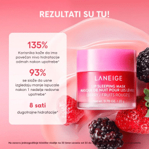 Laneige je korejski kozmetički brend poznat po svojoj posvećenosti inovativnim formulacijama i visokokvalitetnim proizvodima za negu kože i šminku. Osnovan je 1994. godine kao deo Amorepacific grupe, sa misijom da pruži "dobro spavanje" koži kroz efikasne proizvode. Laneige nudi širok asortiman proizvoda, uključujući hidratantne kreme, serume, tonere i maske. Njihova poznata linija "Water Sleeping Mask" pruža intenzivnu hidrataciju tokom noći. Brend takođe nudi proizvode za šminkanje, kao što su ruževi, puderi i palete senki, koji kombinuju funkcionalnost sa zabavnim dizajnom. Laneige se ističe korišćenjem naprednih tehnologija i prirodnih sastojaka, kao što su kompleksi voća i biljaka, kako bi pružio efikasnu negu kože.