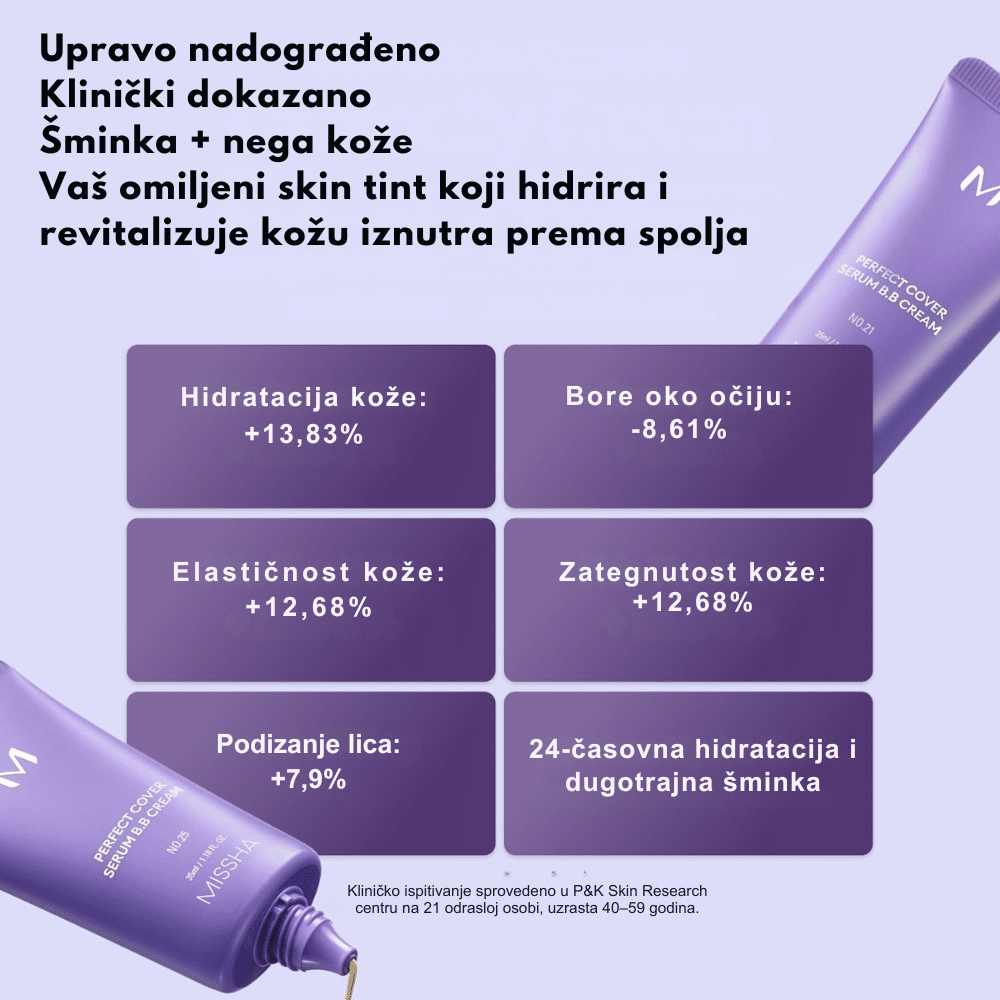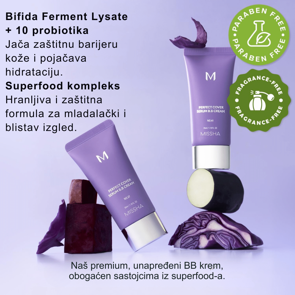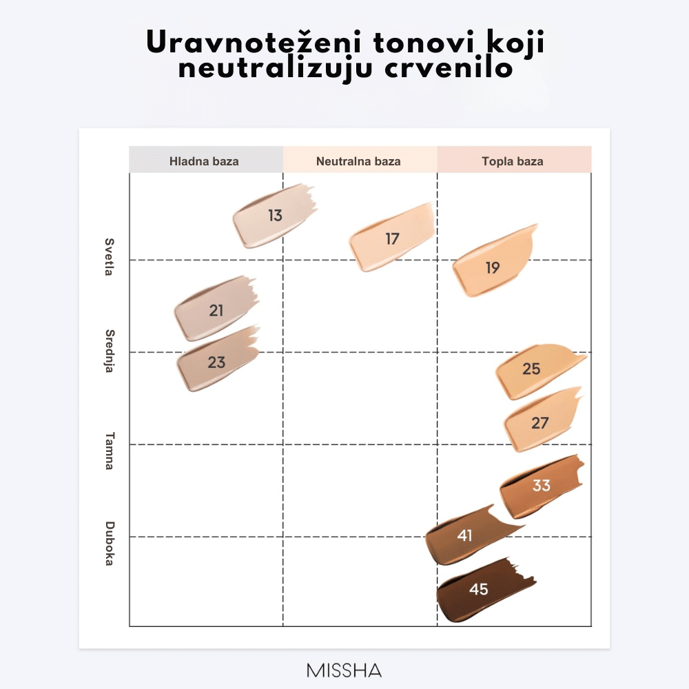Missha je korejski kozmetički brend poznat po visokokvalitetnim proizvodima za negu kože i šminku, koji kombinuju efikasnost sa pristupačnim cenama. Osnovan je 2000. godine, a brend je deo Amorepacific grupe, jedne od najvećih korejskih kozmetičkih kompanija. Missha nudi širok asortiman proizvoda, uključujući BB kreme, serume, esencije i maske. Njihova popularna linija "Time Revolution" sadrži proizvode sa fermentisanim sastojcima koji pomažu u obnovi kože i borbi protiv starenja. Brend je poznat po svojim BB kremama, kao što je "M Perfect Cover BB Cream", koja pruža srednje do visoko prekrivanje, dok istovremeno hidrira kožu i štiti je od UV zračenja. Missha se ističe posvećenostšću kvalitetu i inovacijama, nudeći proizvode koji zadovoljavaju različite potrebe potrošača.
