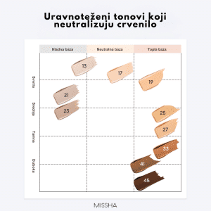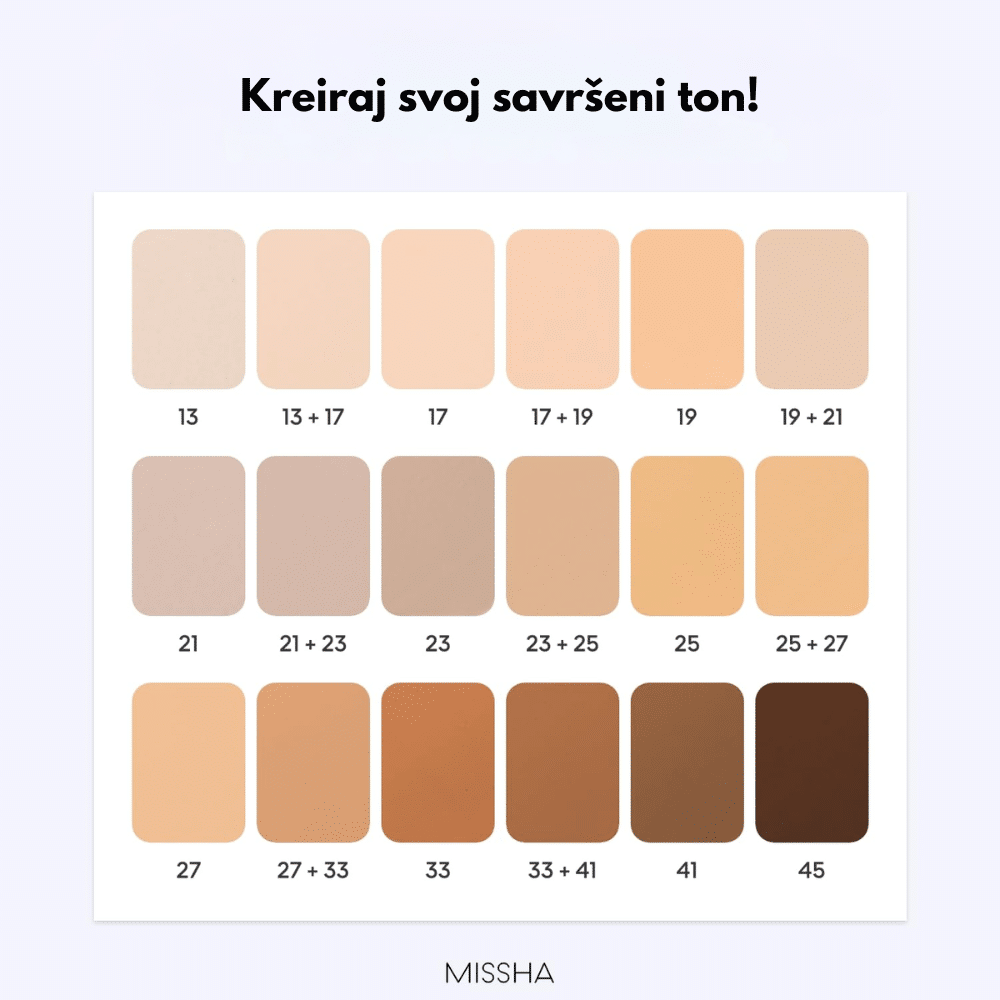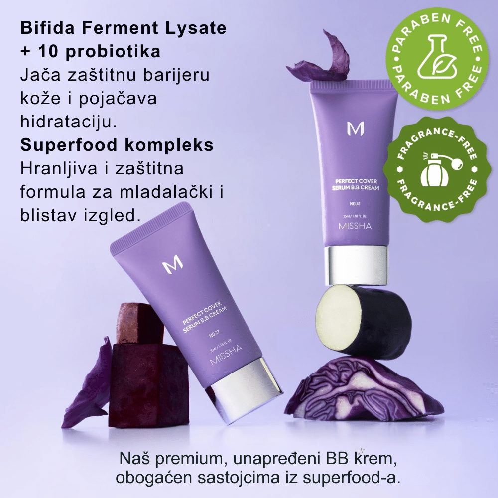 Missha je korejski kozmetički brend poznat po visokokvalitetnim proizvodima za negu kože i šminku, koji kombinuju efikasnost sa pristupačnim cenama. Osnovan je 2000. godine, a brend je deo Amorepacific grupe, jedne od najvećih korejskih kozmetičkih kompanija. Missha nudi širok asortiman proizvoda, uključujući BB kreme, serume, esencije i maske. Njihova popularna linija "Time Revolution" sadrži proizvode sa fermentisanim sastojcima koji pomažu u obnovi kože i borbi protiv starenja. Brend je poznat po svojim BB kremama, kao što je "M Perfect Cover BB Cream", koja pruža srednje do visoko prekrivanje, dok istovremeno hidrira kožu i štiti je od UV zračenja. Missha se ističe posvećenostšću kvalitetu i inovacijama, nudeći proizvode koji zadovoljavaju različite potrebe potrošača.