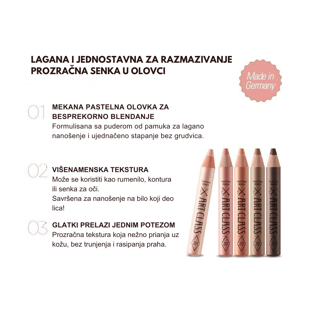 Too Cool For School Artclass Frottage Pencil #13 Tender Brown je topla, meka braon nijansa koja očima pruža nežnu definiciju i prirodnu toplinu, bez oštrih linija i jakog kontrasta. Kombinuje toplu čokoladnu bazu sa blagim mlečnim podtonom, stvarajući savršenu nijansu za svakodnevni, prirodan makeup.