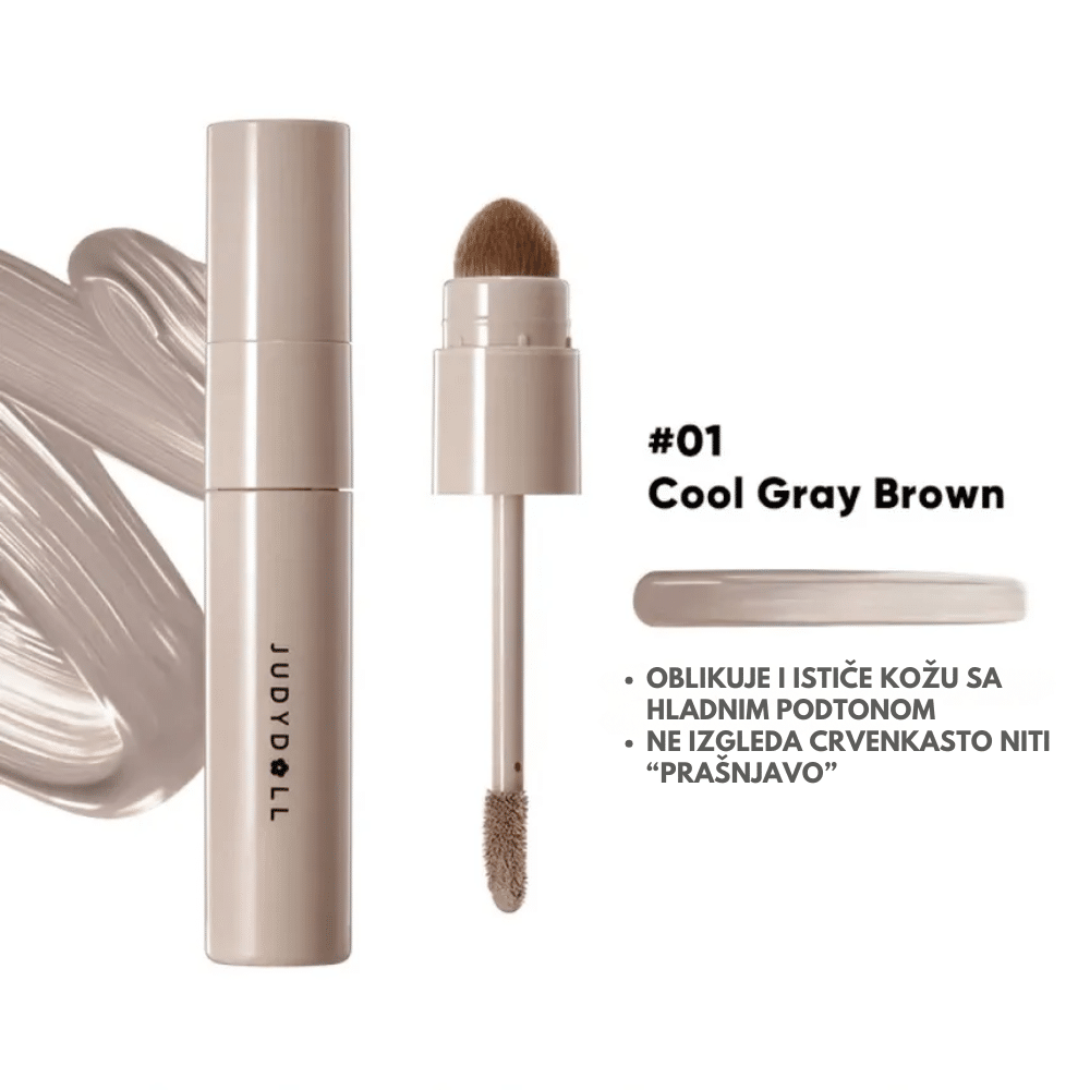 Judydoll Liquid Contour #01 Cool Gray Brown je ultra-lagani tečni kontur dizajniran za postizanje realističnih, hladnih senki bez toplih ili narandžastih podtonova. Njegova kremasto-tečna formula savršeno se stapa sa kožom, lako se blenda i omogućava precizno modelovanje lica za prirodno definisan, profesionalan i ujednačen izgled tokom celog dana. Nijansa #01 Cool Gray Brown je hladna, sivo-braon nijansa dizajnirana da imitira prirodnu senku kože bez ikakve topline. Idealna je za hladne i neutralne tonove kože, kao i za sve koji žele ultra-prirodnu, preciznu definiciju obraza, nosa i vilice bez toplih, žutih ili narandžastih tonova.