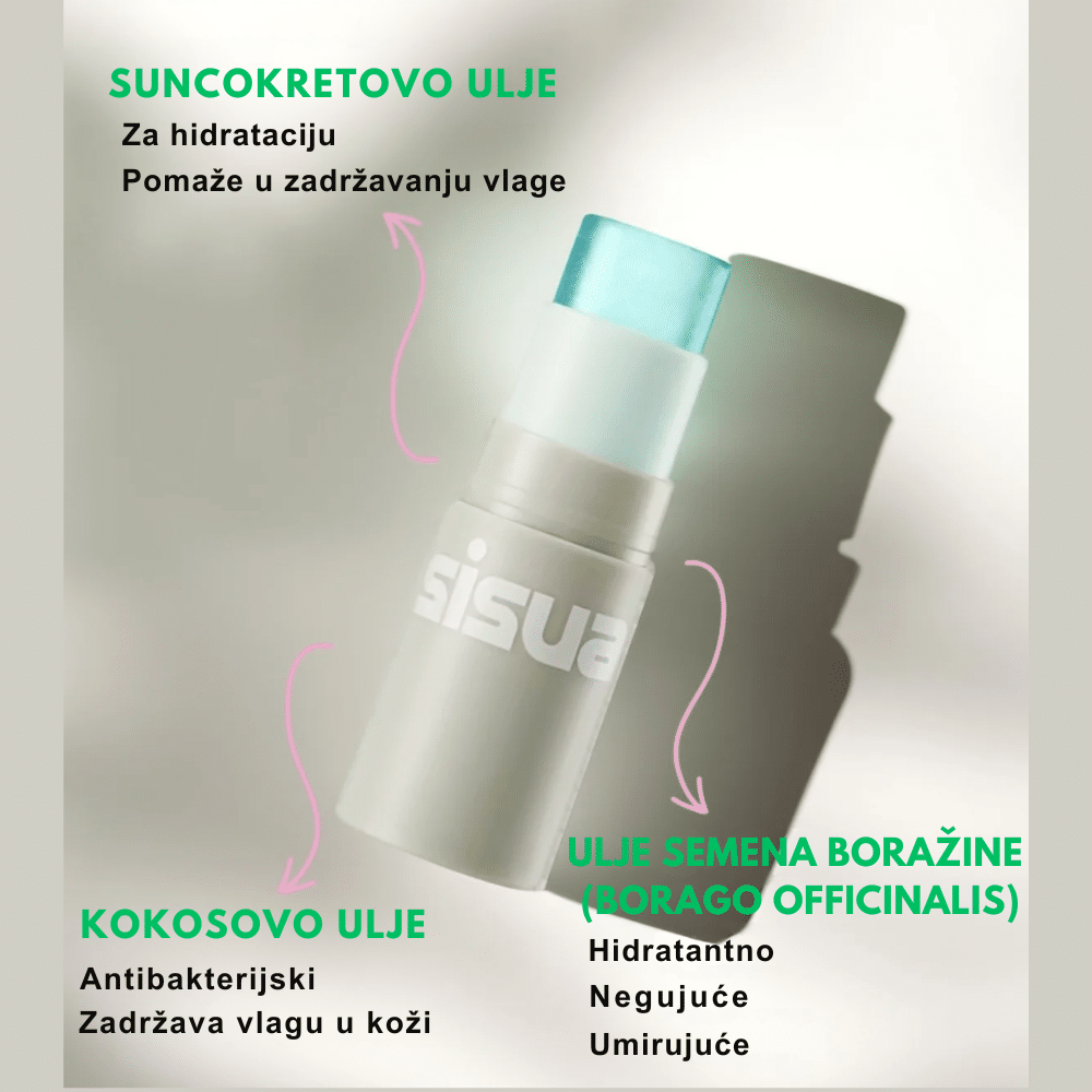 UNLEASHIA Sisua Butter Waffle Glow Stick je iluminator u stiku sa prozirnom formulom obogaćenom česticama ružičastog zlata, koji pruža prirodan sjaj koži. Sadrži biljna ulja poput ulja nevena i suncokreta, koja hidriraju i umiruju kožu