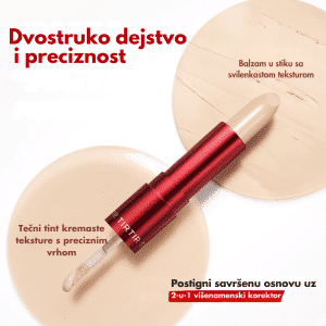 Dvostruki korektor sa tečnom formulom i balmom. Prirodno prekriva, osvetljava i vizuelno smanjuje pore i linije, ostavljajući mek, prirodno mat ten.
