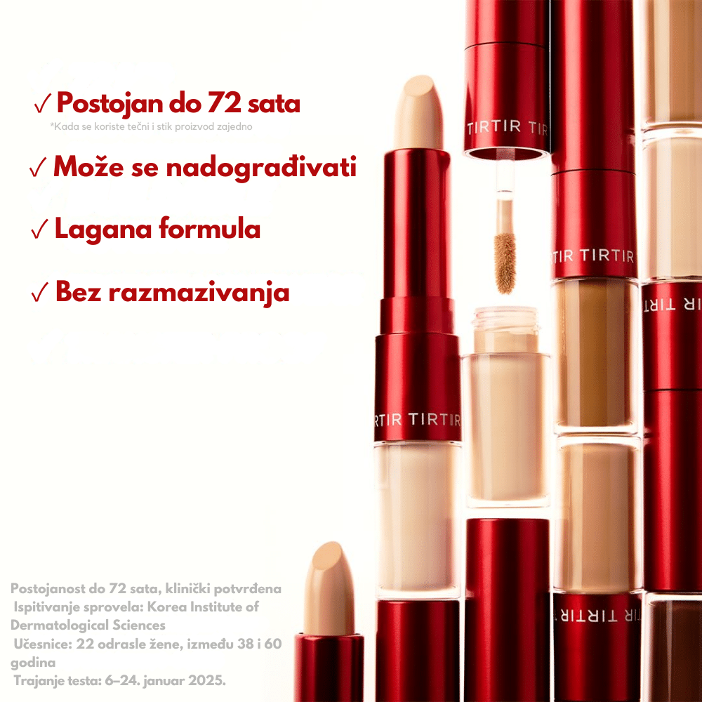 TIRTIR Glide & Hide Blurring Concealer #5C je dvostruki korektor koji kombinuje kremasti stick i lagani tečni korektor kako bi pružio prirodno, postepeno nadogradivo prekrivanje i svež izgled kože tokom celog dana. Ovaj korektor vizuelno umanjuje vidljivost pora i finih linija, dok ujednačava ton kože i pruža gladak, ujednačen finish bez osećaja težine. Tekstura se lako stapa sa kožom, idealna je za prekrivanje nepravilnosti, posvetljavanje podočnjaka i precizno konturisanje.