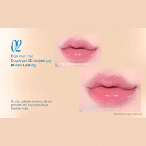 Fwee 3D Changing Gloss #00 Clear je prozirni sjaj za usne sa 3D volumizing efektom koji vizuelno povećava volumen usana i pruža intenzivan, staklasti sjaj bez lepljivog osećaja. Njegova lagana, glatka formula se savršeno stapa sa prirodnom bojom usana, zaglađuje njihovu teksturu i ostavlja sočan, čist glossy finiš. Idealan je za svakodnevnu upotrebu, samostalno ili kao završni sloj preko ruža i tintova. Nijansa #00 Clear je potpuno prozirna i bez boje, namenjena postizanju maksimalnog sjaja i vizuelnog volumena bez promene prirodne boje usana. Savršena je kao univerzalni gloss, topper preko drugih proizvoda ili za clean, minimalistički „glass lips“ look.