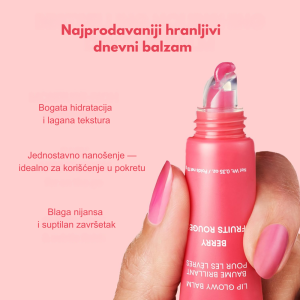 Hranljivi balzam-gloss sa nijansom plave borovnice koji hidrira usne i daje im staklasti sjaj.