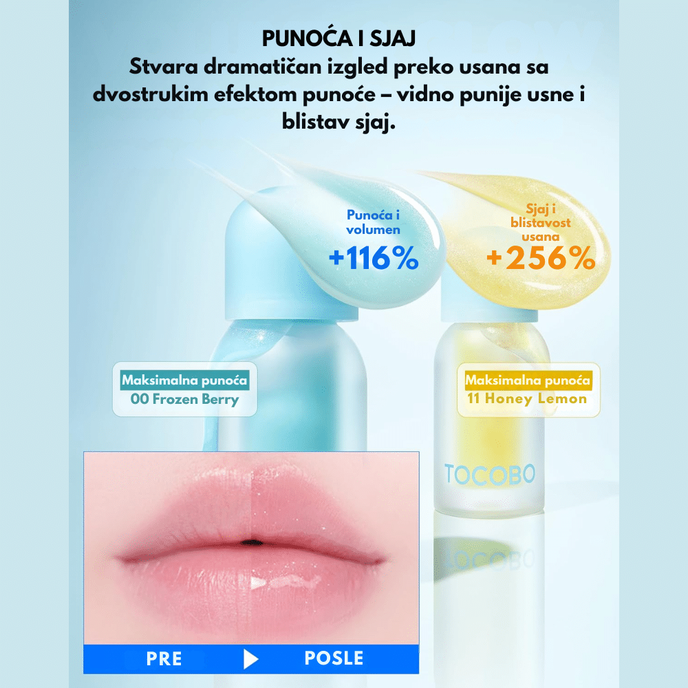 TOCOBO Juicy Berry Plumping Lip Oil #11 Honey Lemon je hranljivo, sjajno ulje za usne koje pruža prirodno puniji izgled, visok sjaj i osećaj hidriranih, mekanih i negovanih usana tokom celog dana. Formula je obogaćena biljnim uljima i antioksidansima koji obnavljaju suve i ispucale usne, čine ih glatkim i elastičnim, bez lepljenja ili težine. Zahvaljujući laganoj gel-uljanoj teksturi, ulje ravnomerno prekriva usne, daje im sočan i svež izgled i stvara efekat „staklastih usana“. Idealan je izbor za svakodnevnu negu, prirodan make-up look i slojevito nanošenje preko karmina za dodatni sjaj i volumen.