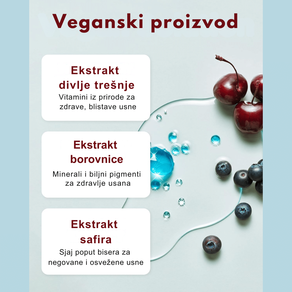 Naneti direktno na čiste usne kao hidratantni tretman ili sjaj. Može se nanositi samostalno za prirodan staklasti efekat ili preko karmina radi dodatnog volumena i sjaja. Po potrebi ponavljati tokom dana.