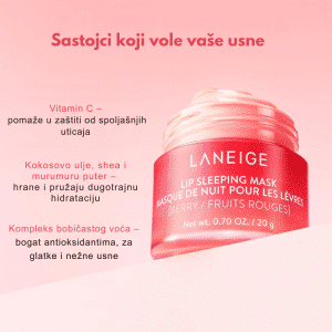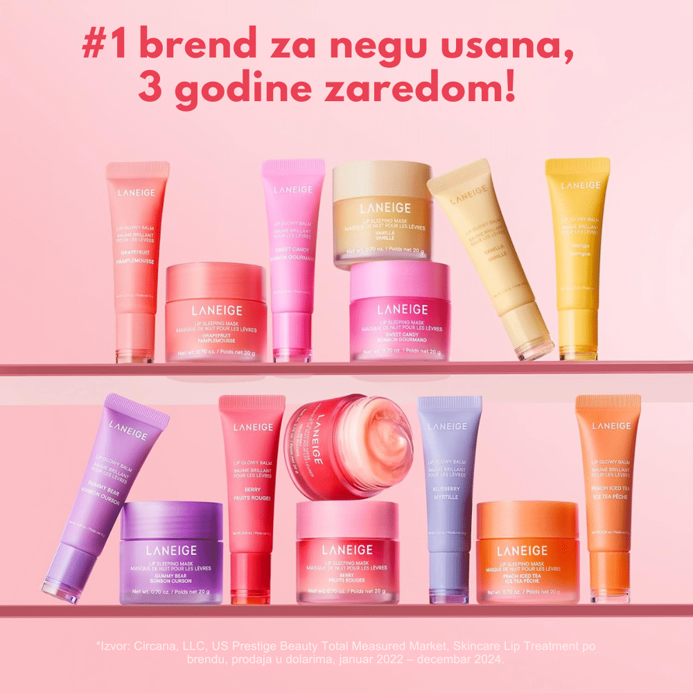 Laneige je korejski kozmetički brend poznat po svojoj posvećenosti inovativnim formulacijama i visokokvalitetnim proizvodima za negu kože i šminku. Osnovan je 1994. godine kao deo Amorepacific grupe, sa misijom da pruži "dobro spavanje" koži kroz efikasne proizvode. Laneige nudi širok asortiman proizvoda, uključujući hidratantne kreme, serume, tonere i maske. Njihova poznata linija "Water Sleeping Mask" pruža intenzivnu hidrataciju tokom noći. Brend takođe nudi proizvode za šminkanje, kao što su ruževi, puderi i palete senki, koji kombinuju funkcionalnost sa zabavnim dizajnom. Laneige se ističe korišćenjem naprednih tehnologija i prirodnih sastojaka, kao što su kompleksi voća i biljaka, kako bi pružio efikasnu negu kože.