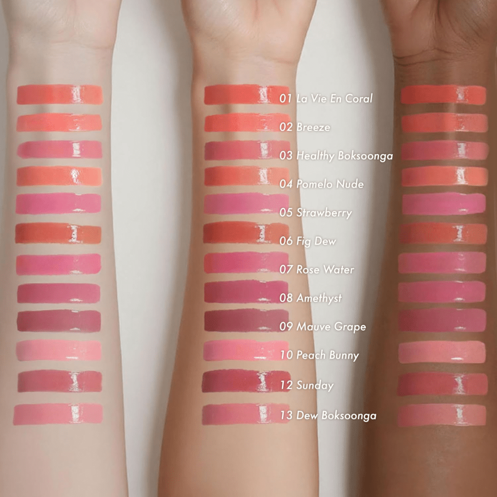 AMUSE Dew Tint #03 Healthy Boksoonga je hidrirajući tint za usne sa delikatnim breskvasto-rozikastim efektom i prirodno sjajnim finish-om koji usnama daje svež, puniji i sočan izgled. Formula sadrži 35% vodene esencije i biljne ekstrakte koji pružaju bogatu hidrataciju, nežno umiruju usne i ostavljaju ih elastičnim i glatkim bez lepljenja. Zahvaljujući ultra-laganoj gel-teksturi, tint se topi na usnama i formira dugotrajni dewy sloj koji izgleda zdravo i sjajno poput stakla.