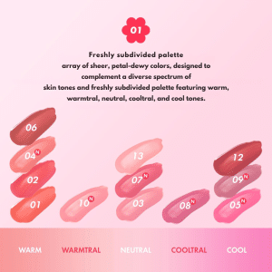 Ovaj tint pruža dugotrajnu boju, ravnomerno se nanosi i ostavlja prirodnu stain boju koja se zadržava i nakon što sjajni sloj nestane. Idealan je za svakodnevnu upotrebu, lako se nadograđuje i savršeno kombinuje sa prirodnim, minimalističkim makeup look-om.