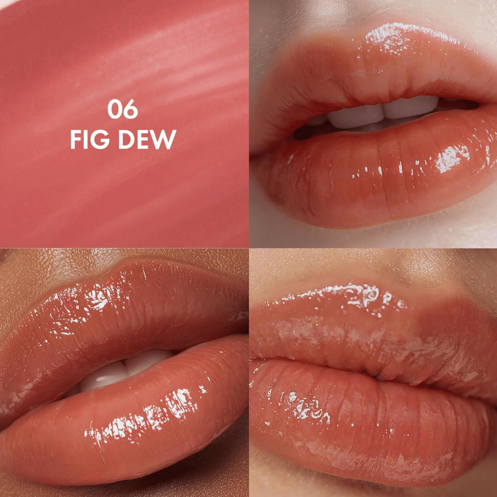 Nijansa #06 Fig Dew je nežan breskvasto-ružičasti ton sa blagim toplo-neutralnim podtonom, koji daje usnama prirodnu boju punu mekoće i zdravog sjaja — odlična za svetlije i srednje tenove koji žele suptilan ali elegantan rezultat.