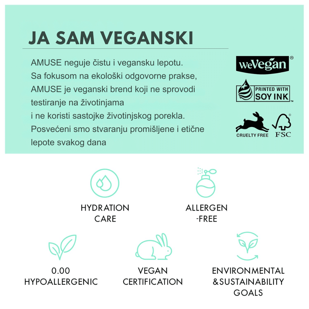 AMUSE je korejski brend koji se ističe u svetu lepote kroz svoju posvećenost čistim, veganskim i održivim proizvodima za negu kože i šminku. Inspirisan životnim stilom i kulturom Seula, AMUSE teži da korisnicima pruži proizvode koji ne samo da neguju lepotu spolja, već i podstiču unutrašnju snagu. Asortiman brenda obuhvata razne proizvode, uključujući tečne ruževe, palete senki, pudere i balzame za usne. Svi proizvodi su pažljivo formulisani sa čistim sastojcima, bez štetnih hemikalija, i dolaze u ekološki prihvatljivom pakovanju. AMUSE ostaje posvećen pružanju visokokvalitetnih, čistih i održivih kozmetičkih proizvoda, omogućavajući korisnicima da se izraze kroz lepotu koja je u skladu sa njihovim vrednostima.