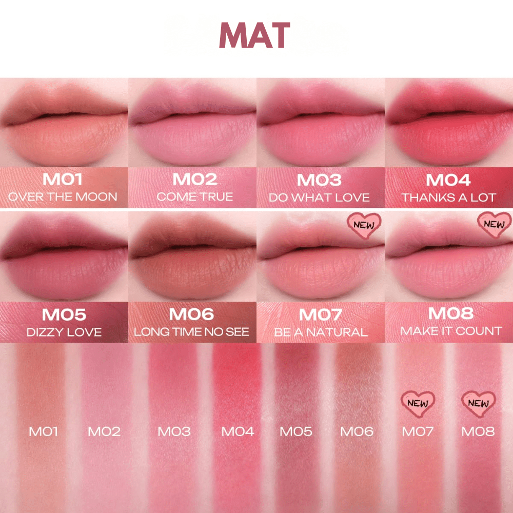 Peripera Slip On My Lip M03 Do What Love je ultra-lagani mat ruž koji klizi poput balzama, istovremeno pružajući bogatu pigmentaciju i baršunasto ujednačen završetak. Njegova air-mat formula omekšava usne, ne ističe teksturu i ostavlja prirodno zamućen efekat, savršen za svakodnevni elegantni look uz dugotrajnu udobnost. Nijansa M03 Do What Love je topla ružičasto-breskvasta boja sa mekim mat efektom, savršena za prirodan, romantičan i dnevni look. Pristaje različitim tonovima kože i pruža svež, nežno osvetljen završetak bez naglašavanja teksture.