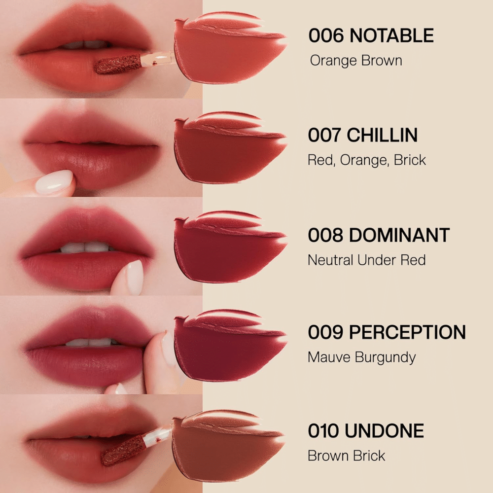 Muzigae Mansion Objet Liquid 008 Dominant je intenzivni mat tečni ruž u bogatoj crveno-braon nijansi koji pruža snažnu pigmentaciju, meku gel-mat teksturu i izražajan “blur” efekat, idealan za hrabar i moćan make-up izgled. Nijansa 008 Dominant je duboka crveno-braon boja sa toplim podtonom koja daje dramatičan, izražajan i moćan mat efekat, savršena za večernje look-ove i snažan vizuelni utisak.