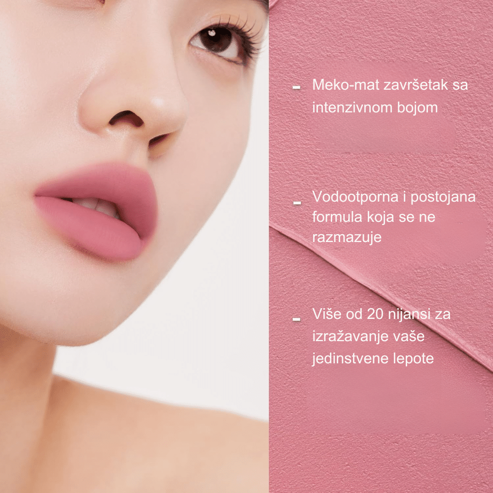 Rosé-ružičasta mat nijansa sa laganom teksturom koja daje osvetljen, nežan i prirodno ujednačen izgled usana.
