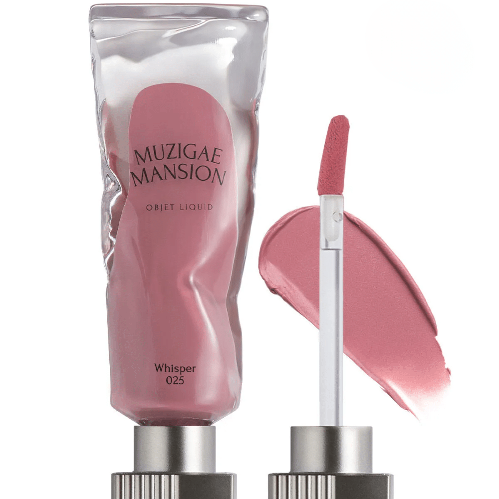 Muzigae Mansion Objet Liquid 025 Whisper je elegantni mat tečni ruž u hladnoj mauve-ružičastoj nijansi koji pruža laganu gel-mat teksturu, baršunast “blur” efekat i sofisticiran, nežno definisan izgled usana savršen za svakodnevni make-up. Nijansa 025 Whisper je hladni mauve-ružičasti ton koji daje suptilan, romantičan i nežno definisan mat efekat — savršena za minimalističke i svakodnevne look-ove.