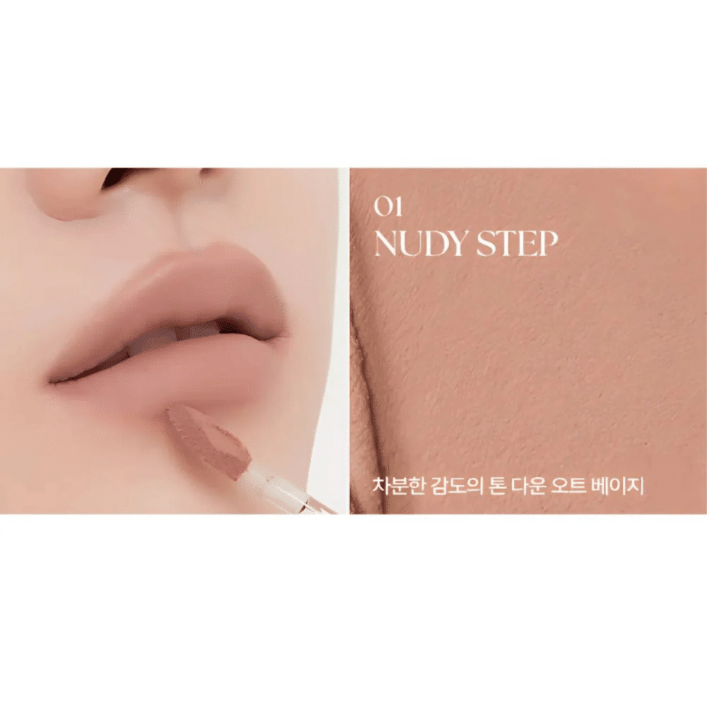 Muzigae Mansion Tie Up Cover Tint 01 Nudy Step je visoko-pigmentovani tečni tint sa mekom mat završnicom koji prekriva usne u jednom pokretu i pruža dugotrajnu, glatku i laganu teksturu bez osećaja suvoće. Ova nude-bež nijansa idealno ujednačava prirodnu boju usana i daje elegantan, sofisticiran i svakodnevno nosiv izgled. Nijansa 01 Nudy Step je elegantan nude-bež ton sa toplim podtonom koji suptilno ujednačava boju usana i pruža čist, minimalistički i izuzetno prirodan izgled — savršen za dnevne look-ove i sve koji vole nežne, neutralne tonove.