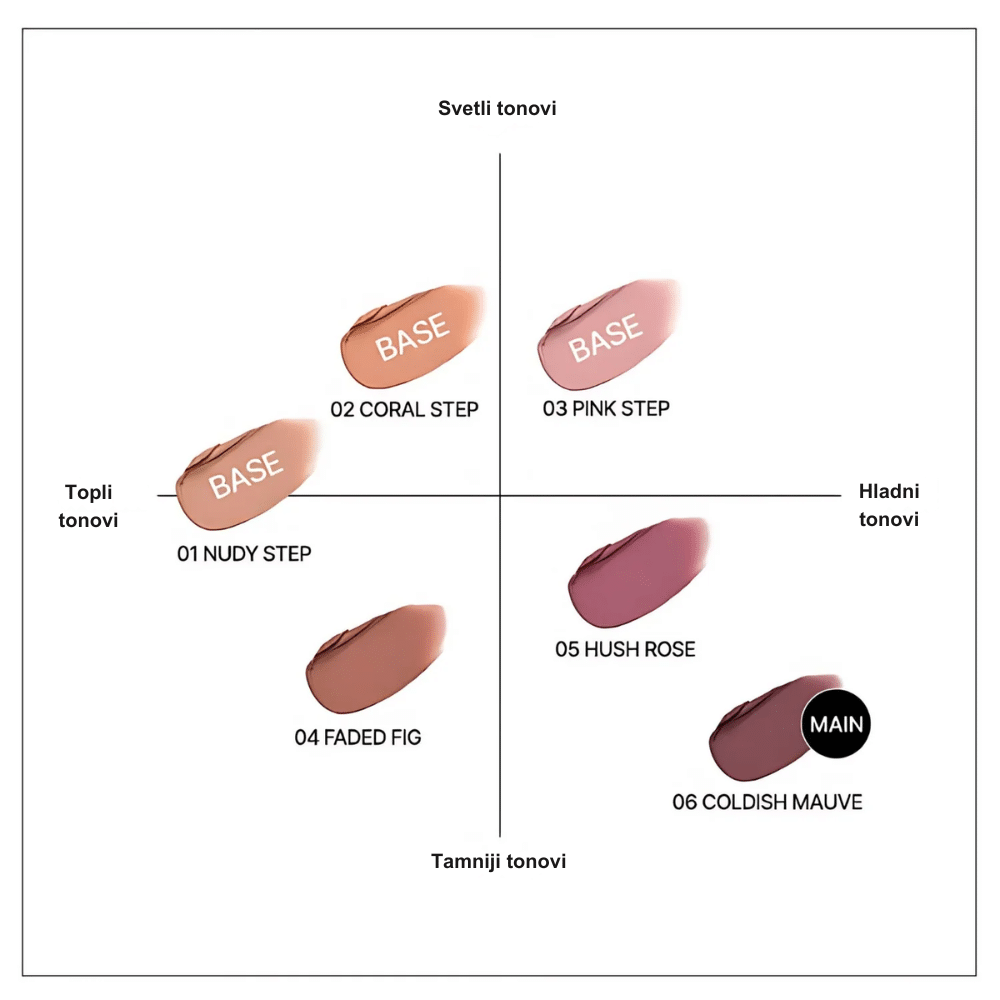 Topla koralno-breskvasta mat nijansa sa laganom teksturom i visokim intenzitetom boje za svež, osunčan i prirodno ujednačen izgled.