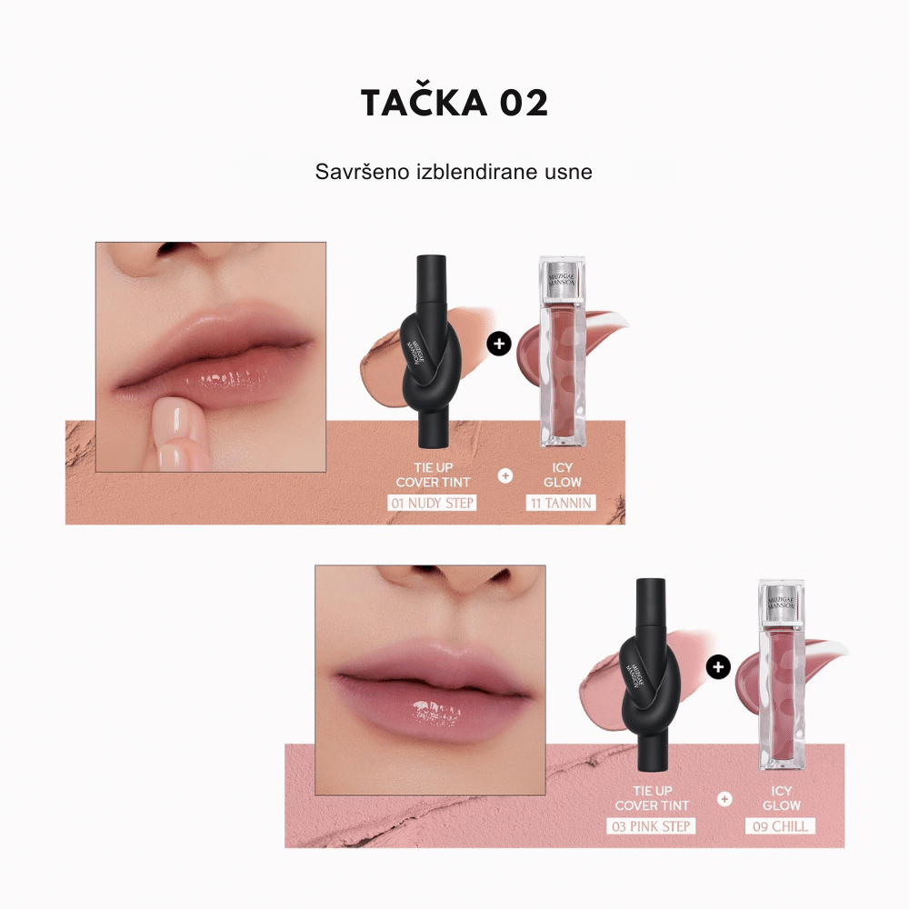 Muzigae Mansion Tie Up Cover Tint 04 Faded Fig je elegantni mat tečni tint u hladnoj ljubičasto-šljiva nijansi koji pruža visoku pigmentaciju, glatku gel-mat teksturu i sofisticiran “blur” efekat, idealan za moderan, izražajan i prefinjen izgled usana. Nijansa 04 Faded Fig je hladni ljubičasto-šljiva ton sa upečatljivim, elegantnim mat efektom koji daje dubinu, definiciju i moderan karakter svakom make-up look-u. Savršena je za večernje stilove, jesenje tonove i izražajne kombinacije.